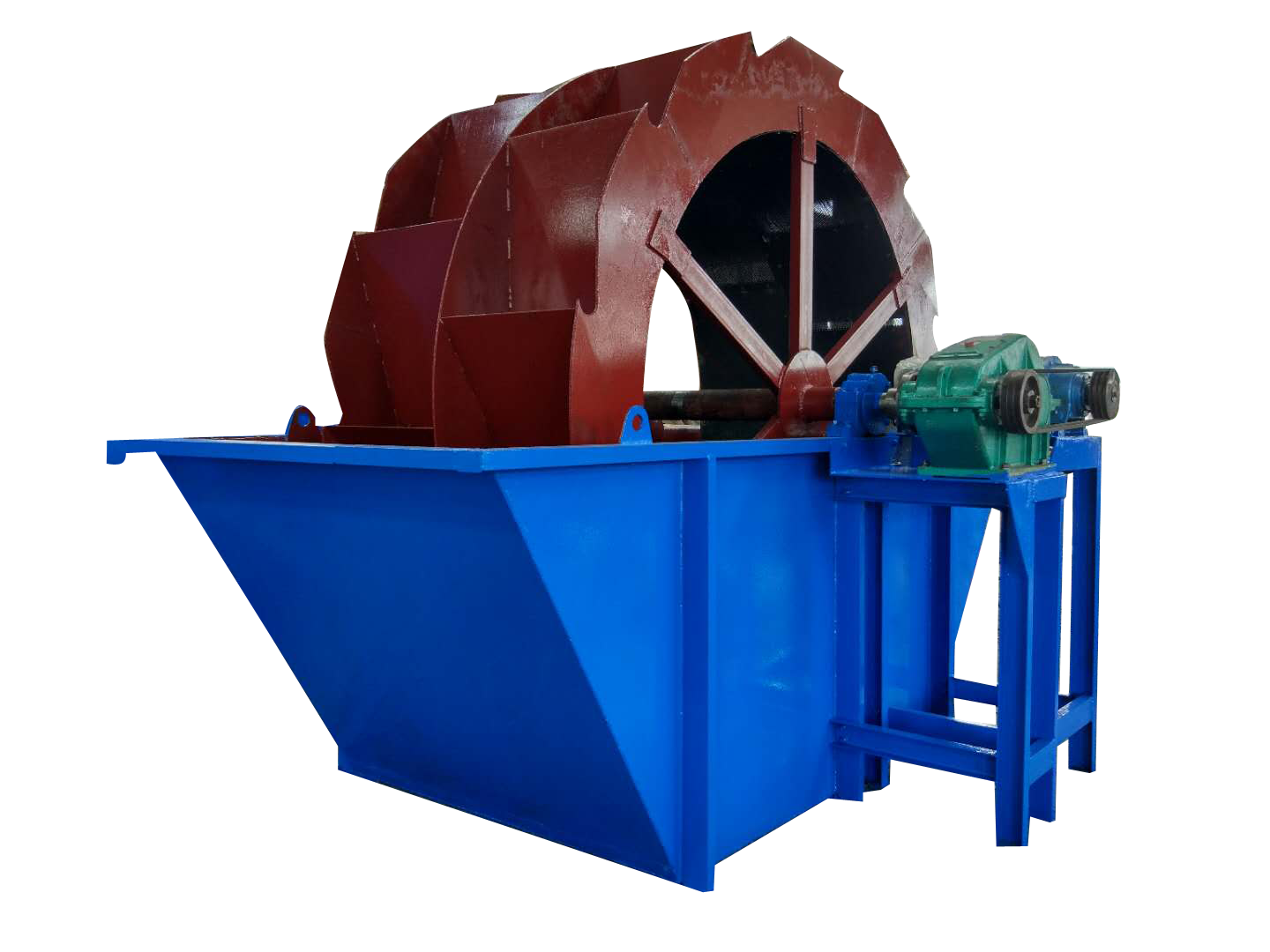 洗砂機在工作中時,在三角皮帶、減(jiǎn)速器、傳動齒輪降速後,由電動機(jī)推動離心葉輪遲緩旋轉,必(bì)須清理的沙石(shí)從給料機槽(cáo)進到洗槽中,在離心葉輪的推動下沙(shā)石中間滾翻(fān)相互之(zhī)間碾磨,進而去除表層粘附的殘渣,一起毀壞包複沙粒的水蒸氣層,有利於脫幹,一起放水,產生強勁(jìn)的流水,立即(jí)將殘渣及重量輕的髒東西帶去,從上溢(yì)口排出來,整潔的沙石會有葉子帶(dài)去,進行沙石的清(qīng)理功效。